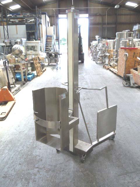 AHS, mobile container/barrel hoist, constructed in 316 st.stl, max container dia 520mm, max weight 30kg up to a height of 2m.