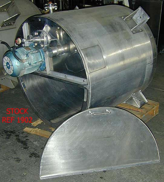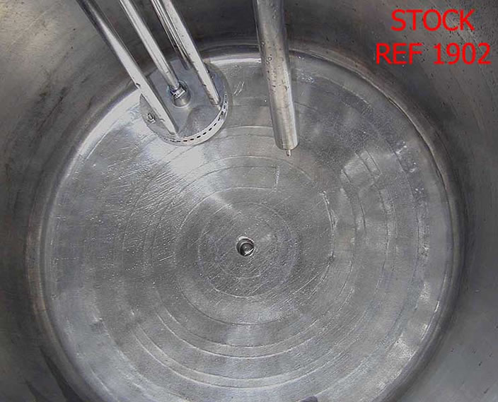 GIUSTI mixing vessel in 316 grade stainless steel. 1000mm dia x 1140mm deep including the bottom dish, full capacity approx. 850 litres. Bolted on top cover with lift up section for access. Fittings include 1 x 80mm dia, 1 x 40mm dia & 1 x 20mm dia threaded connections. Full depth temperature probe fitted, flange mounted from top cover. Offset mounted SILVERSON type mixer driven at 2880 rpm from a 3.5hp TEFC motor. The homogeniser head is 150mm dia general purpose type. The vessel has a full stainless steel limpet coil jacket fitted to the side and base rated for 60 psi wp. It is fully insulated and rigid stainless clad. The bottom outlet is 50mm dia with a reducer to 25mm dia and it has a valve fitted. Four mounting brackets for leg or steelwork mounting. Ex Pharmaceutical, excellent condition, previously used as a pre-mix vessel.