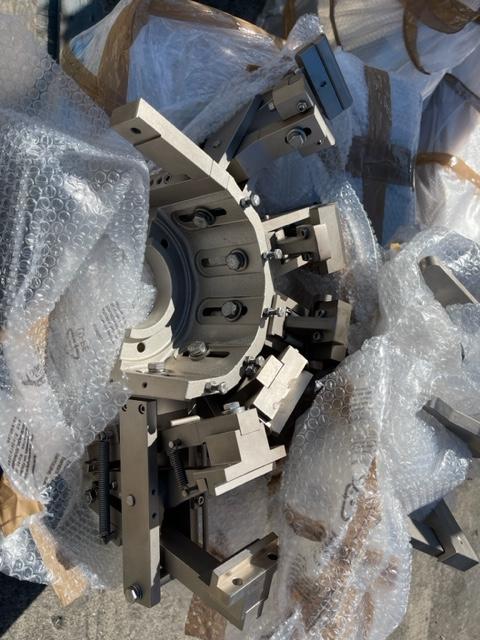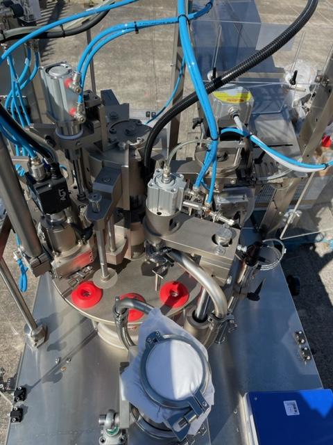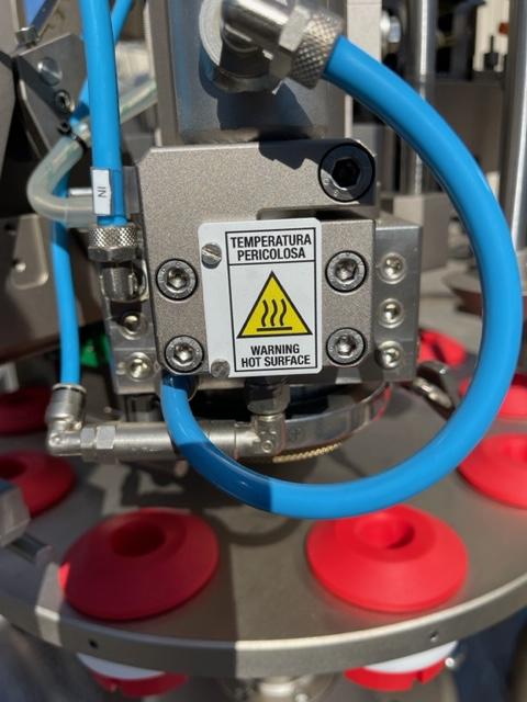 The machine is presently set up with hot air for plastic tubes and there is a brand new wrapped head supplied for aluminium tubes.