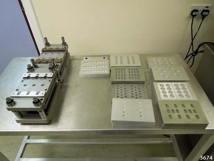 forming area, start forming cycle after setting temperature and time controls, exchange top forming tool with trimming tool, load tablets capsules to