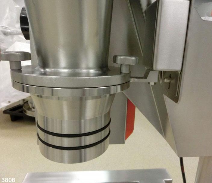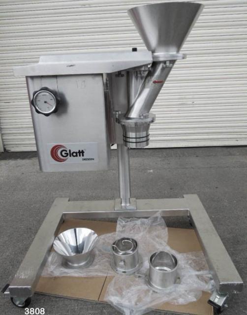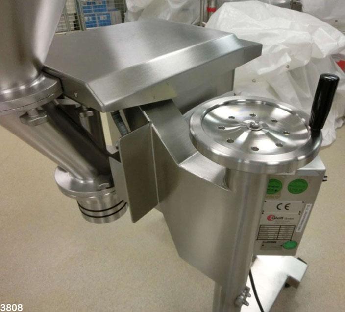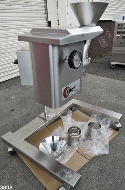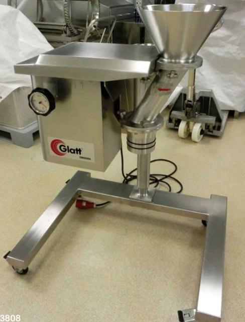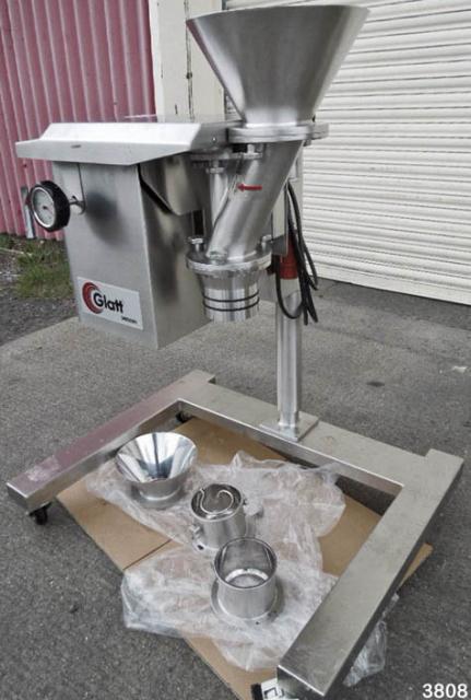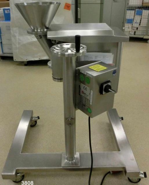 Glatt model GS100 conemill, this machine is suitable for milling agglomerates back to initial size, granulating or reduction of oversized particles of wet and dry products to a specified particle size. Outputs of 20 to 150 kg per hour can be achieved depending on the product characteristics. The machine is manufactured entirely from polished Stainless Steel. Ex pharma.