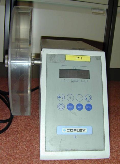 ERWEKA model TA 10 tablet friability tester. 300mm dia x 50mm wide test chamber with baffle. Panel with stop/start/reset; LCD timer +/- display with hrs/mins/secs. 240v 1ph supply. Dimensions 200 x 370 x 280mm high. Supplied with user manual.