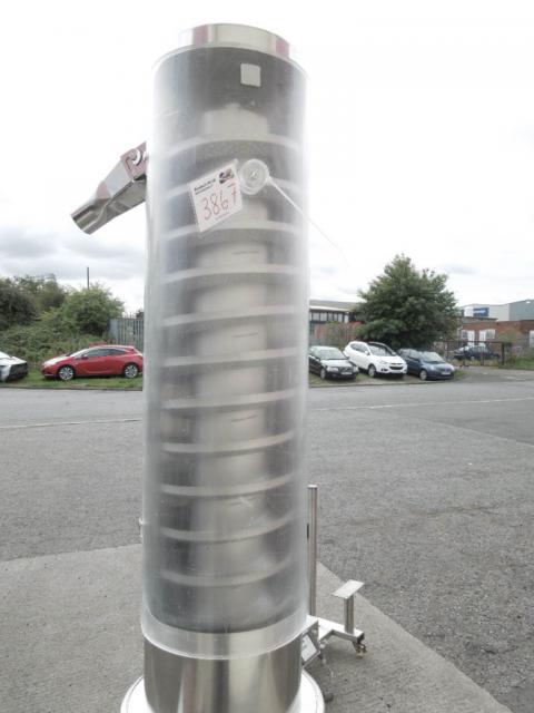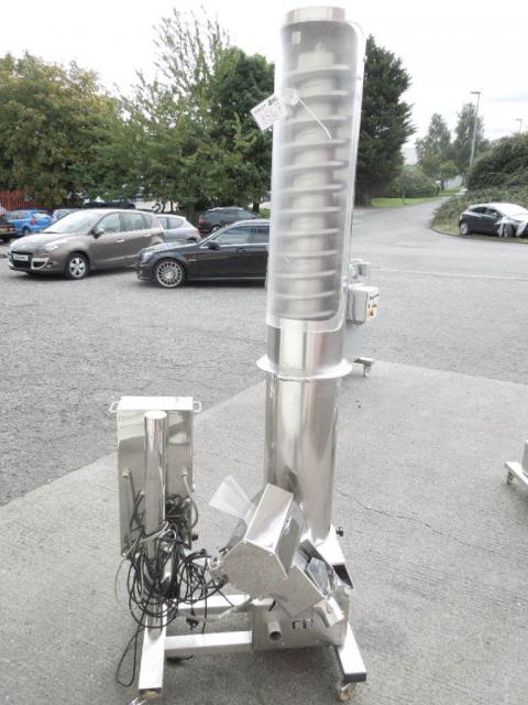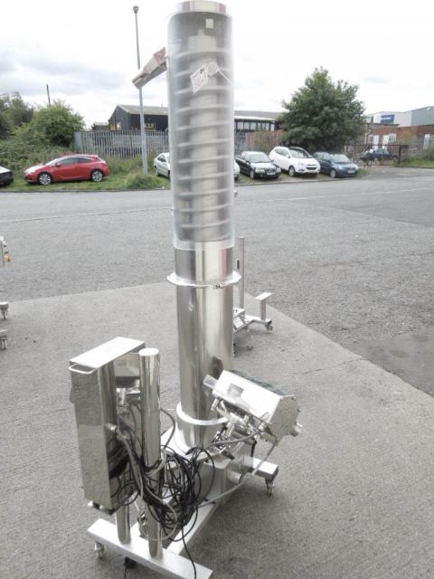 Kraemer C810 deduster and combined Safeline PH2 metal detector. 250mm dia, 2m tablet discharge height, mobile frame.