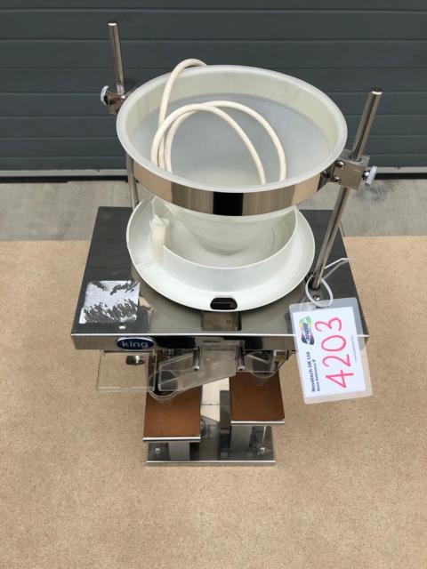 KING "Dispensa" tablet / capsule check counter used to verify sample counts from the tablet filling lines etc. Polished stainless finish. Digitally controlled count adjustment. No tablet size change parts required. Has an LED display for indicating tablet check quantity. Variable speed vibratory control of tablet feed from hopper. Count range 1 - 1,000; 16mm max tablet dia; speed 1,000/min. @ 5mm, 500/min @ 11mm, 300/min capsules.