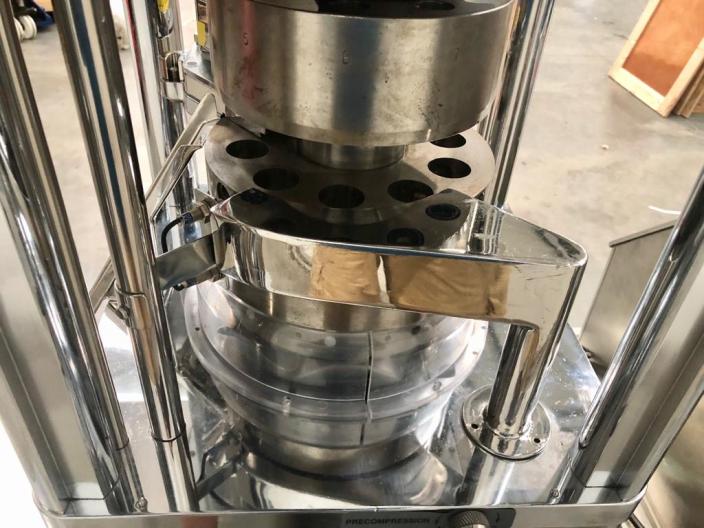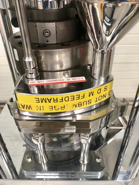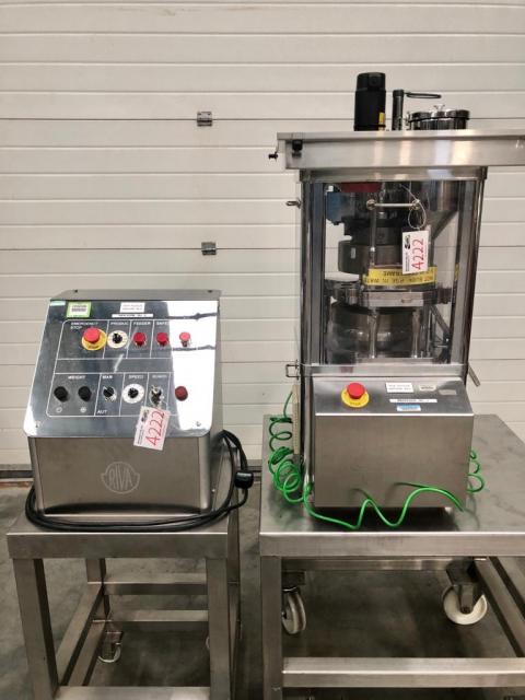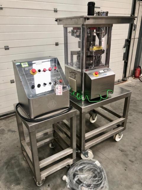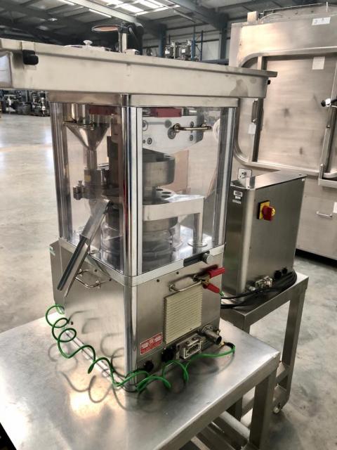 The Riva PICCOLA rotary tablet press table top mounted compact design. With already more than 500 Piccola tablet press units installed worldwide mostly in the R & D field but also in Pilot Scale and Small Scale facilities. The Piccola is a small bench top rotary tablet press specially developed for Research & Development, Pilot Scale or Small Scale production batches.