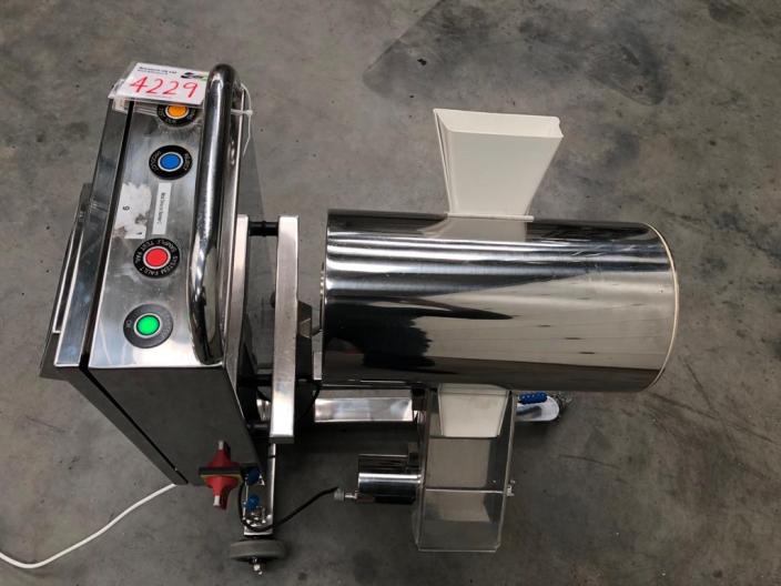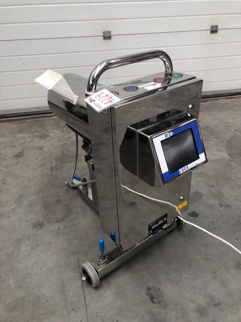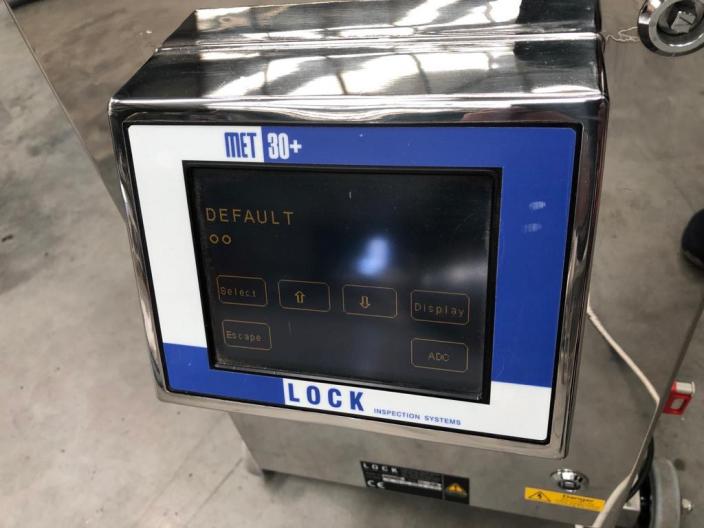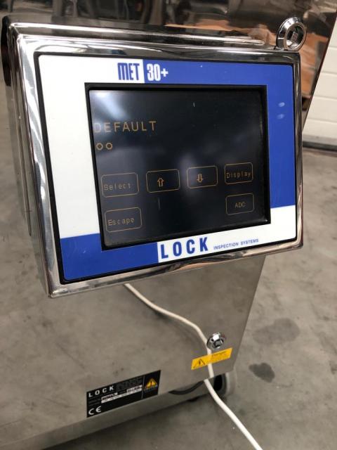 LOCK INSPECTION model MET 30 tablet/capsule metal detector in mirror polished 316 grade stainless steel. Height adjustable cylindrical scanning head with an aperture size of 90mm x 20mm. Instantaneous activation of product diverter system on detection. New updated LCD screen with full touch screen control system for sensitivity setting and operating data plus red/green/blue indicator/status lamps and lamp test feature. Stainless support frame with castors.