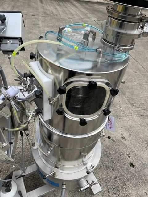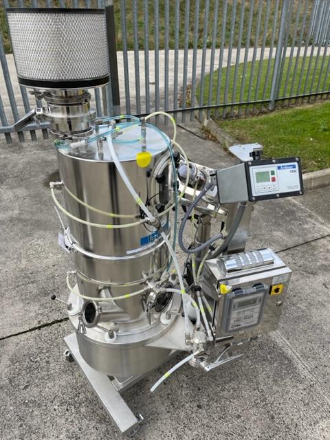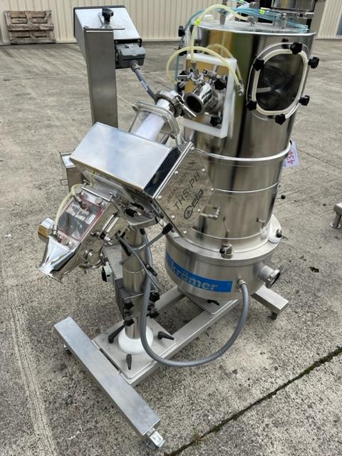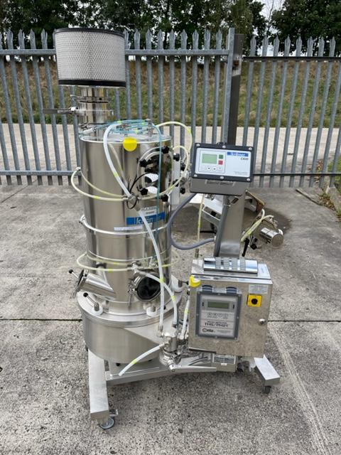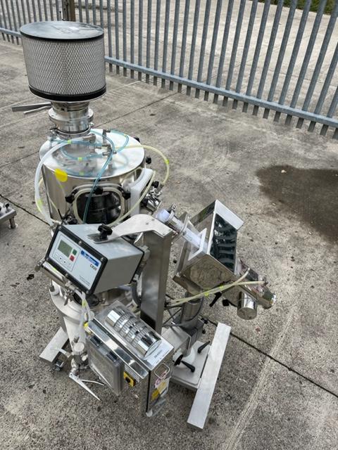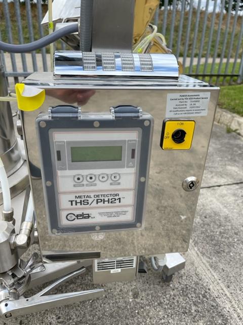 Ceia model THS/PH21 metal check complete with Kraemer C820 spiral deduster sealed within a containment booth. Mirror polished stainless steel construction, mobile frame on castors, exceptional condition.